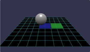 デフォルトで動作(npm start)すると、テクスチャの床と球が表示される。