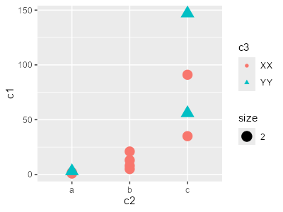 geom_point(aes(x = c2, y = c1, color=c3, pch=c3, size=2))
