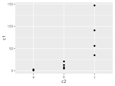 # $ c2: Factor w/ 3 levels "a","b","c": 1 1 1 1 2 2 2 2 3 3 ...