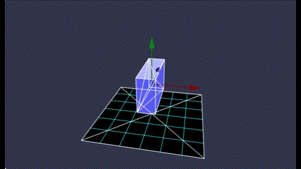 直方体の中心から生えている矢印は、直方体のローカルな座標系の軸の向きを示しています。それぞれ赤がX軸、緑がY軸、青がZ軸になっています。