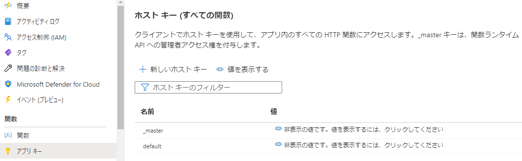 Azureの関数からURLを取得するとクエリパラメータに code= で指定済