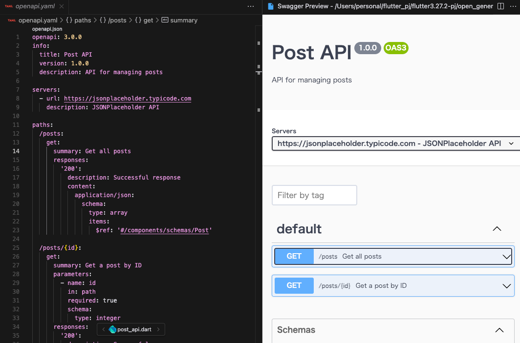 このライブラリを使うと、openapi仕様からopenapiクライアントSDKライブラリをflutter/dartプロジェクト内で生成することができます。