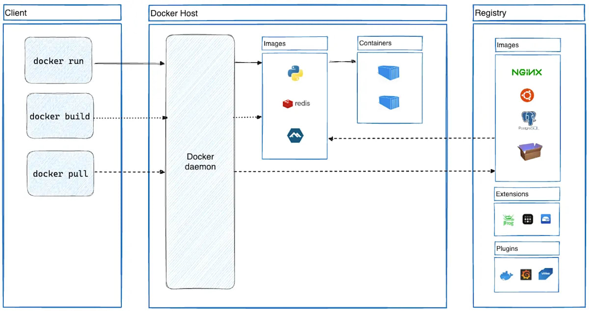 Docker 全体のアーキテクチャにおける Dockerfile の立ち位置は、公式の図解[2]がとてもわかりやすいです。