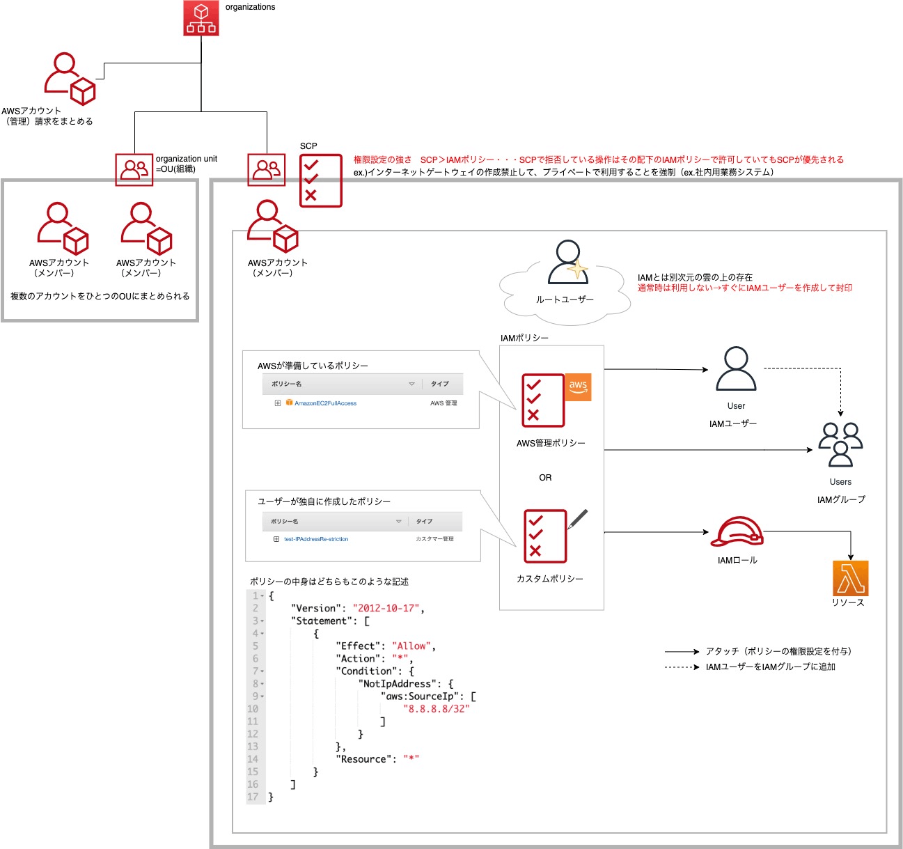 - マルチアカウントやOrganizationsはこちら→マルチアカウント運用での権限移譲と統制の両立 | AWS Summit Tokyo 2019