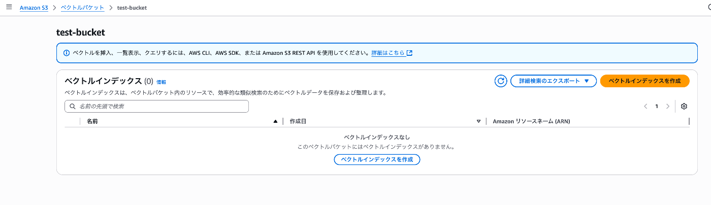 これだけです。VPCやセキュリティグループの設定に悩む必要は一切ありません。このS3バケットはベクトルデータを格納・検索できる状態になりました。