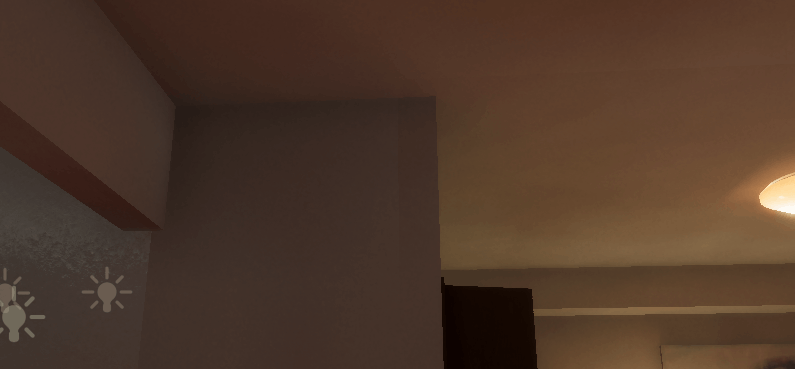 Directional Light を変更していないため、Indirectによって画像左下の壁と床部分がかなり明るくなってしまっている。