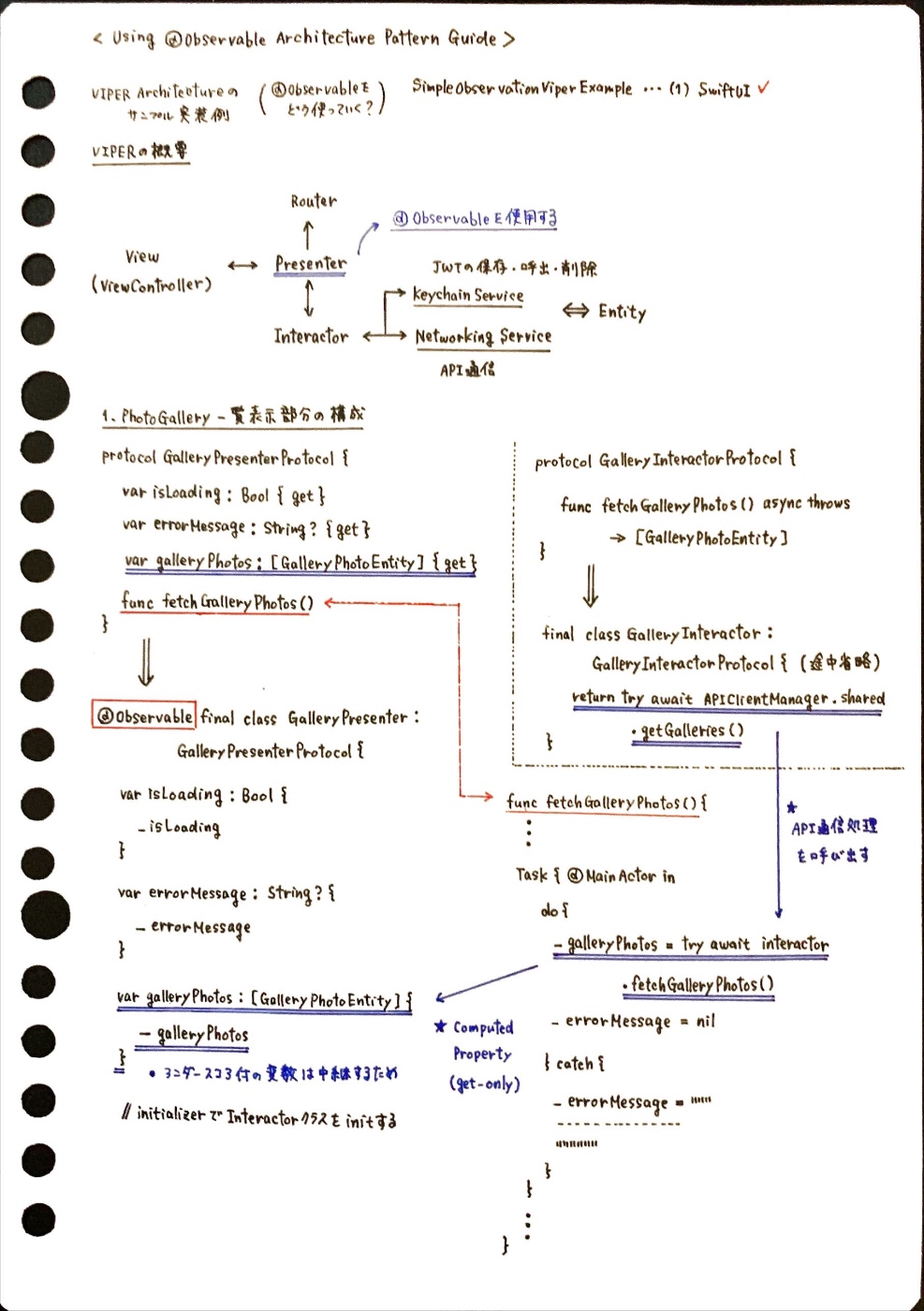 でうまく結びつけている点が非常に興味深いですね。従来の責務分離を保ちながら、SwiftUI特有のリアクティブな画面更新を自然に取り込めるところが大きなメリットと感じました。