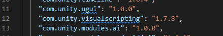 Packages/manifest.jsonをテキストエディタで開き、dependencies欄から、visualscriptingの行を消して保存します。