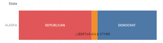 一見しただけでアラスカ州では共和党(REPUBLICAN)が民主党(DEMOCRAT)に勝利したことはわかると思います。では、「共和党が過半数を獲得したかどうか」という問いについてはどうでしょうか?この視覚情報のみから判断することはできますか?即答できる人は少ないのではないでしょうか。