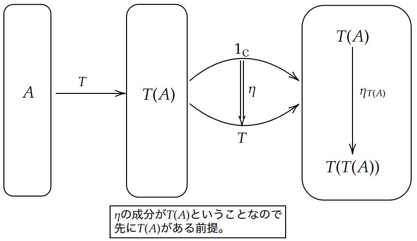 圏論側にあって、PureScript側にないものがあるかと思いますが、これは圏論のモナドを定義する上で登場しない概念です。