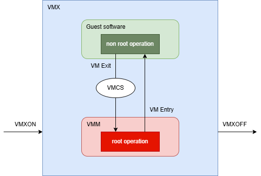 基本的にVMMがroot operationを、guestがnon root operationを実行する