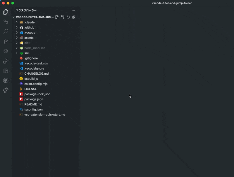 今回作ったのは、Explorer 上でフィルタして選択したフォルダやファイルにフォーカスを移動できる VS Code Extensionです。