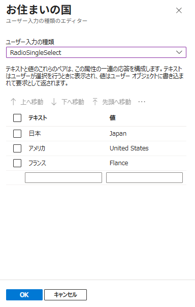 (複数選択)、「お住まいの国」はRadioSingleSelect