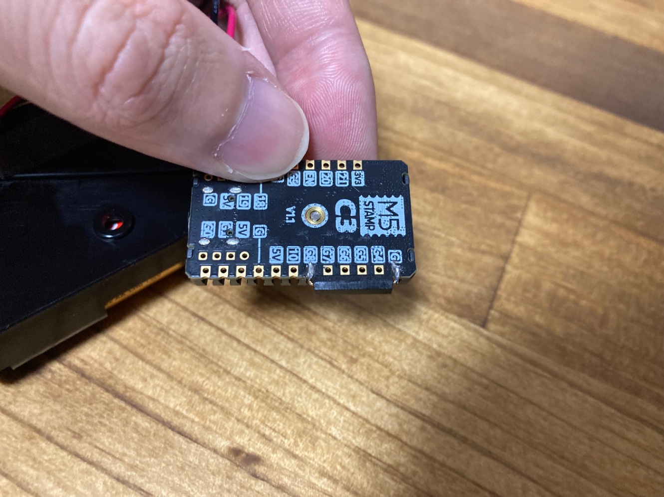 マイコンモジュールに関して、今回の場合は極力小さくてBLE通信ができれば何でも良かったのですが、たまたま手元にM5Stamp C3 Mateが複数余っていたので使った、という程度です。より小ささを追究するならM5Stamp S3やM5Stamp Pico Mateといったデバイスも候補になり得ます。