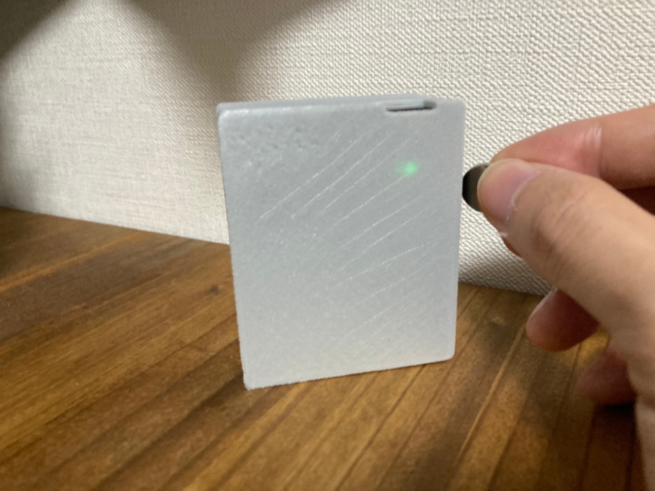 このように磁石を近づけることで読み出せる値が変化することを確認しました。(施錠時は緑に、開放時は赤く光るようにしています)