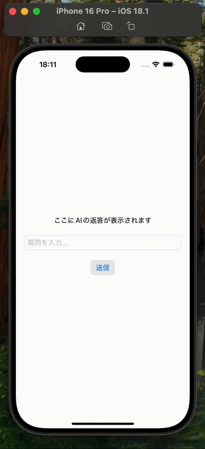 @State private var chatResponse: String = "ここにAIの返答が表示されます"