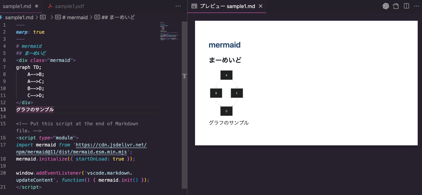 Marpにいれたmermaid記法をVSCodeでPreviewとExport