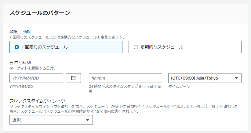となりますが、ここではEventBridge Schedulerで利用できるキーワードを利用します (後述)。