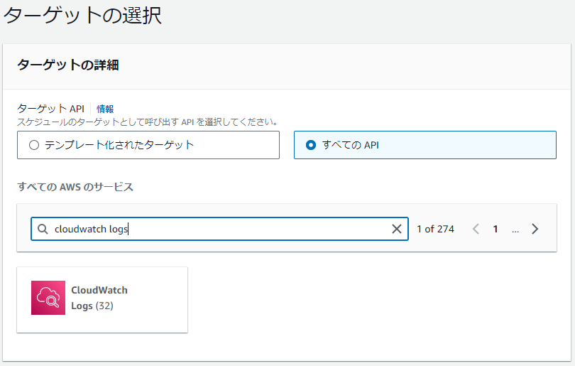 EventBridge Schedulerは多数のAWSサービスのAPIをターゲットに指定できます。この中にはCloudWatch Logsの CreateExportTask