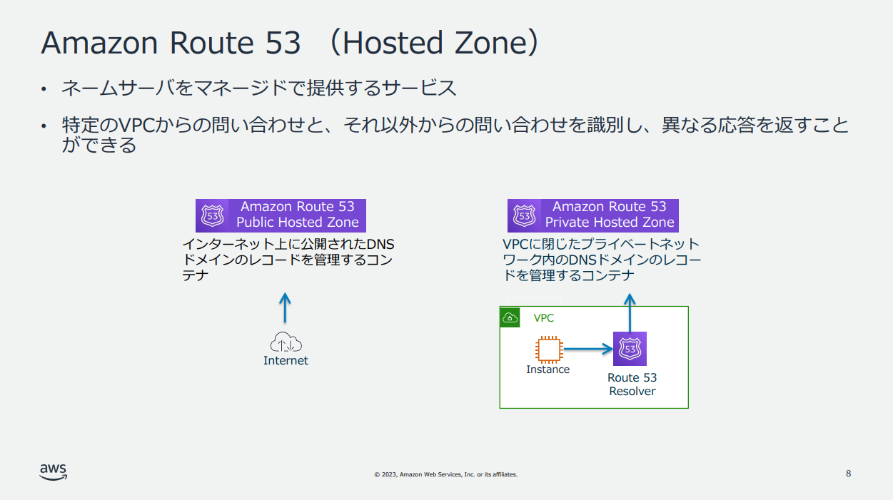 AWSサービスとDNSの各役割との対応関係