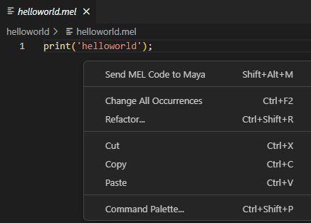 pythonなら [Send Python Code to Maya]、melなら [Send MEL Code to Maya]というコマンドが、context menuの一番上に表示されていればOKです。✅