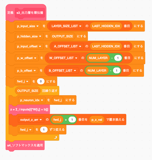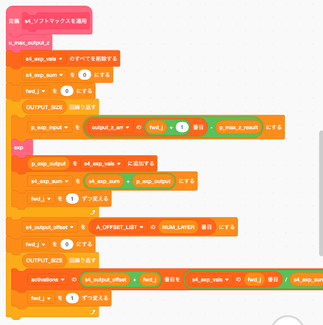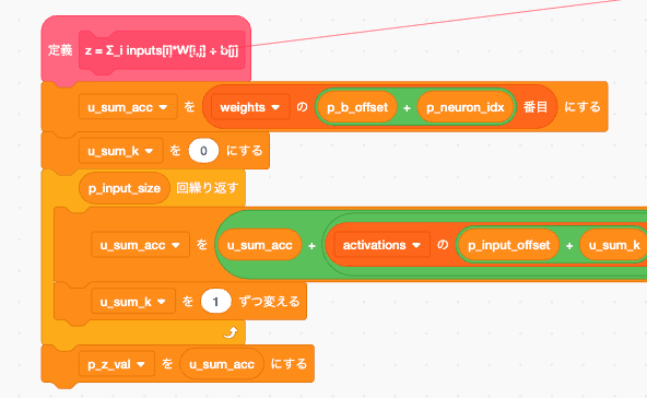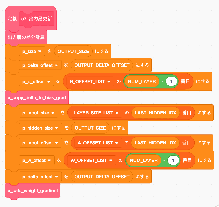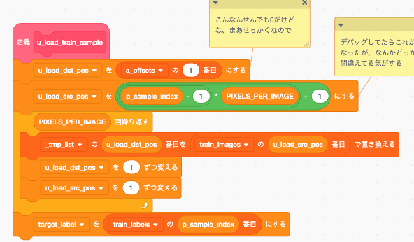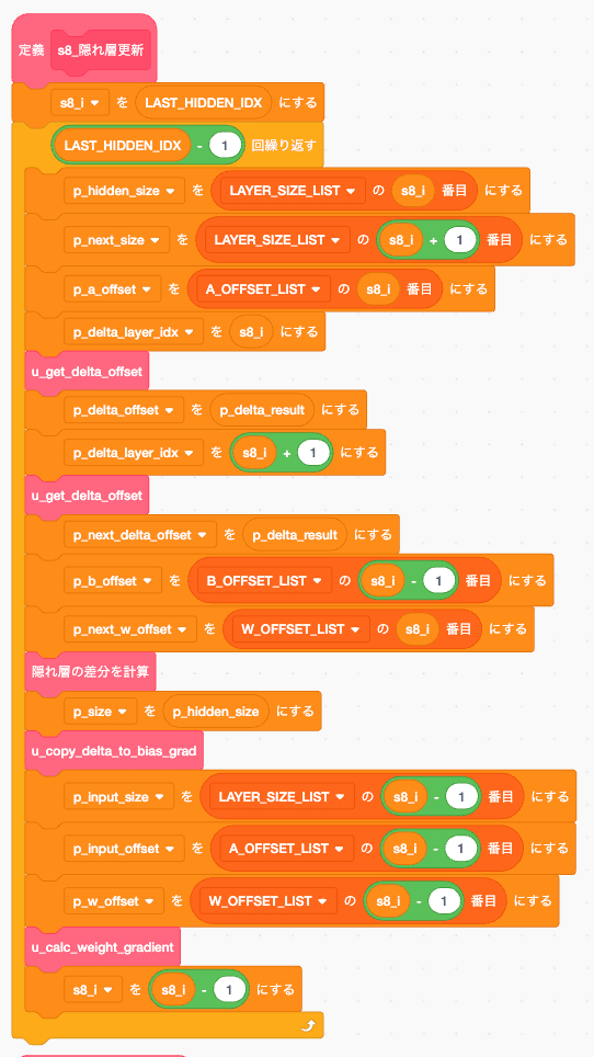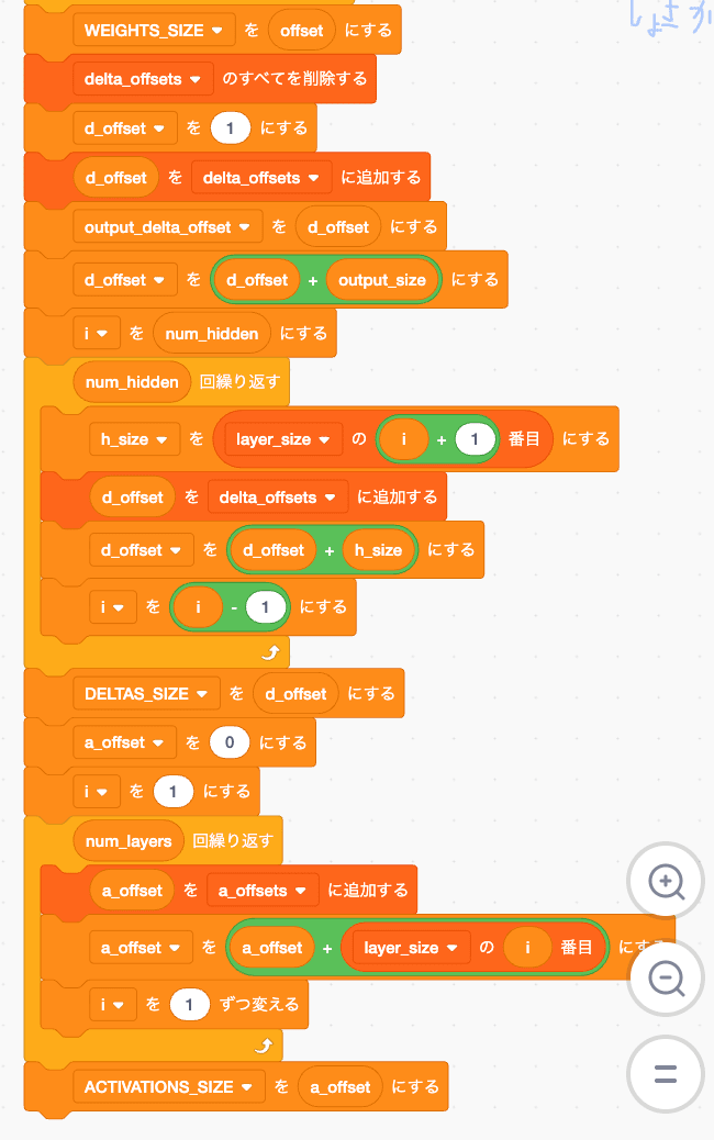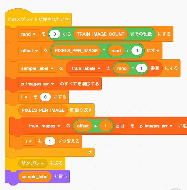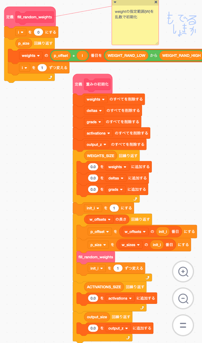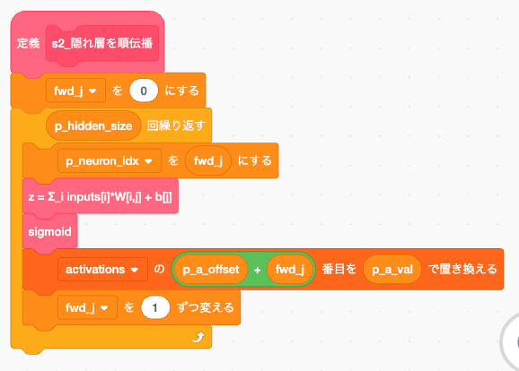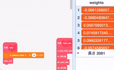 最終的に完成する誤差逆伝播をScratchの標準機能だけで実装したやつ