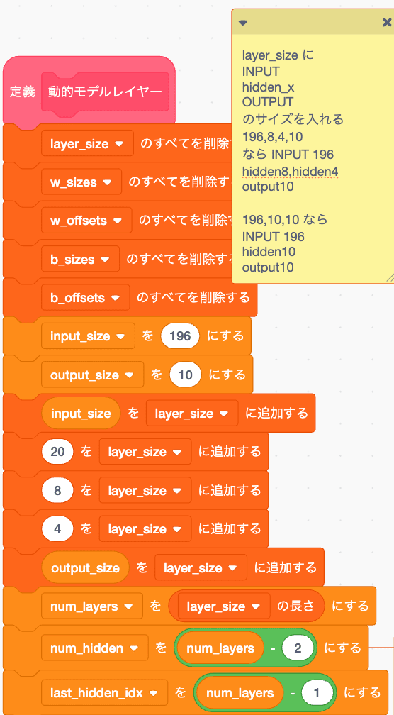 前回のモデルはReLUだったので数字の上限が無制限、Scratch上で学習させたらNaNに収束して失敗したので 活性化関数をsigmoidに変更します