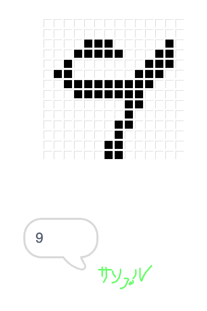 つまり背景を白にして、14x14にリサイズして、1/0にしたやつです。