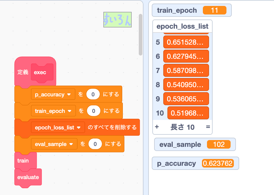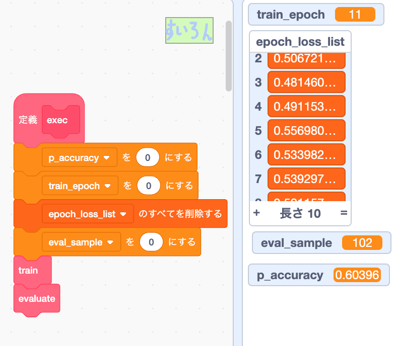Scratch3.0で誤差逆伝播法を実装 day4 動いたけどバグってた、デバッグするぜ