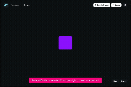 Motion for React は、こうしたユーザーの好みを尊重するための API を提供しています。このガイドでは、reducedMotionオプションとuseReducedMotionフックを使ってアニメーションをアクセシブルにする方法を学びます。
