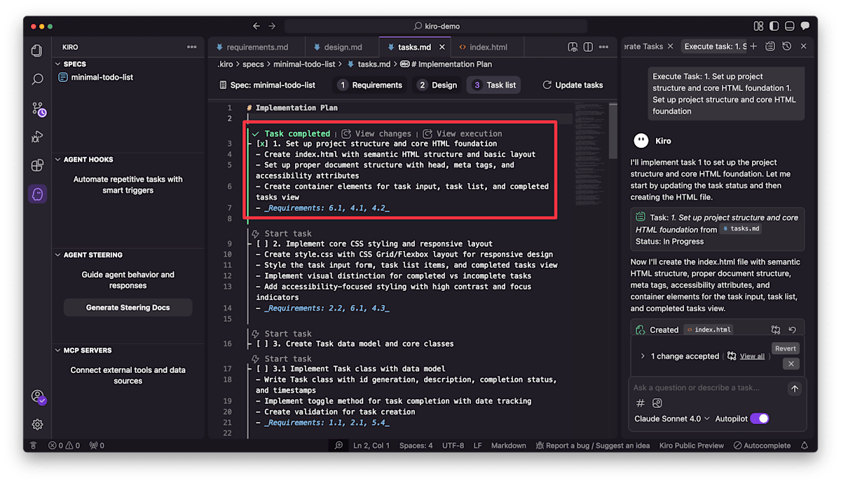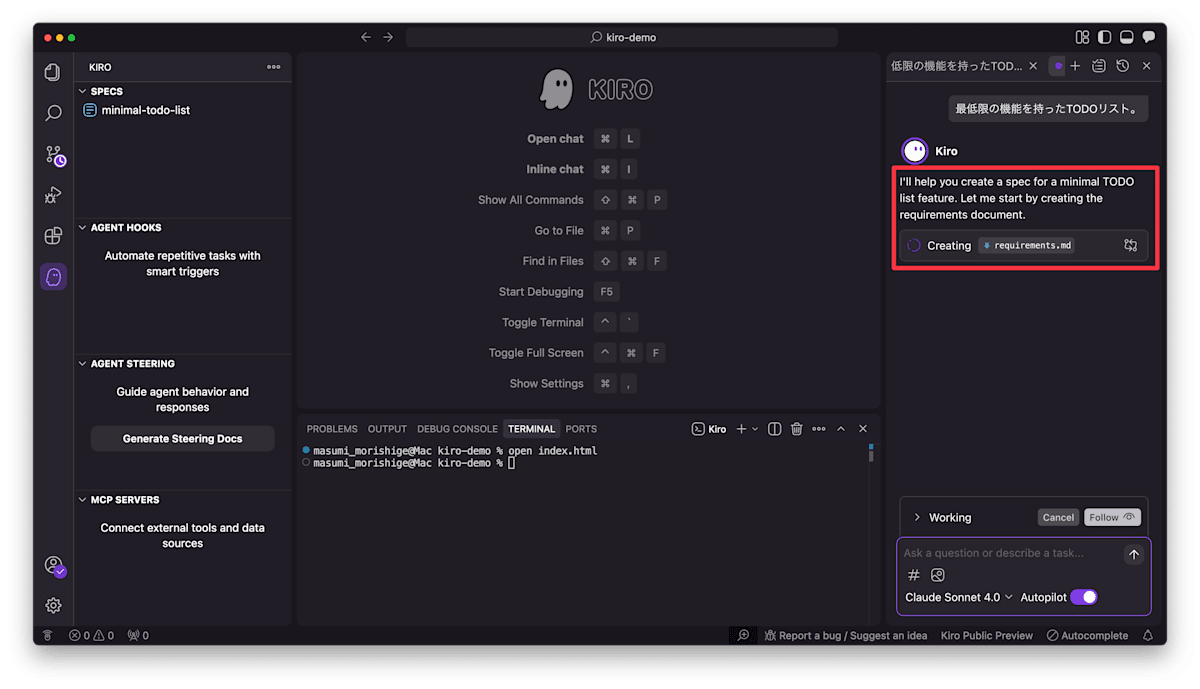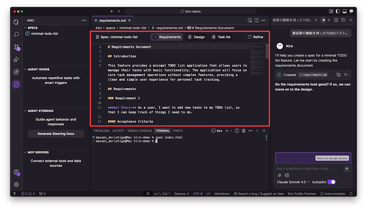 そのため、KiroはまだPreview版ではありますが、それらを落とし込まれている点で非常に有用なツールだと考えられます。