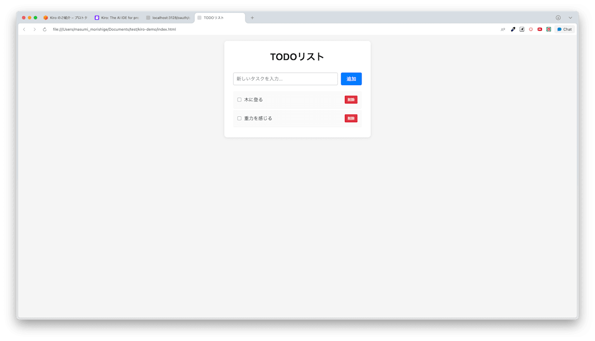 ここでは、以下のようなプロンプトでTODOリストを作成してみます。