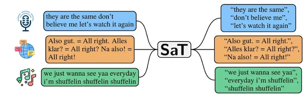SaTとは、Segment any Textの略で、言語情報を「フレーズ(Phrase)」や「センテンス(Sentence)」などのまとまりに分割する技術です。
