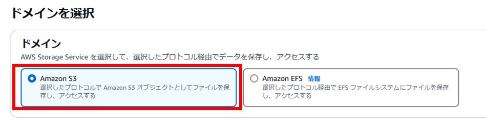 - データをS3へ格納するので[Amazon S3]を選択する。