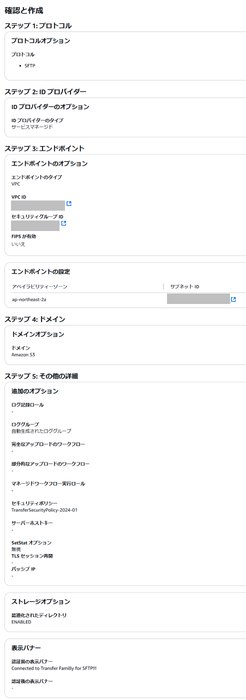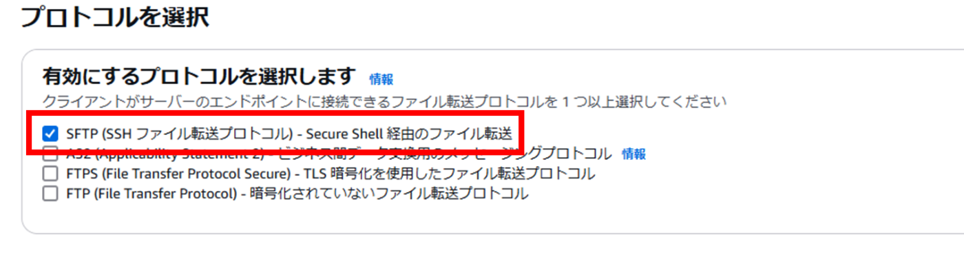 - TransferFamily for SFTPを作成