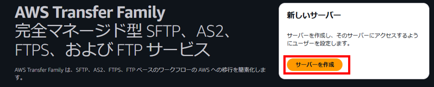 - TransferFamillyのコンソールから[サーバーを作成]を選択する。