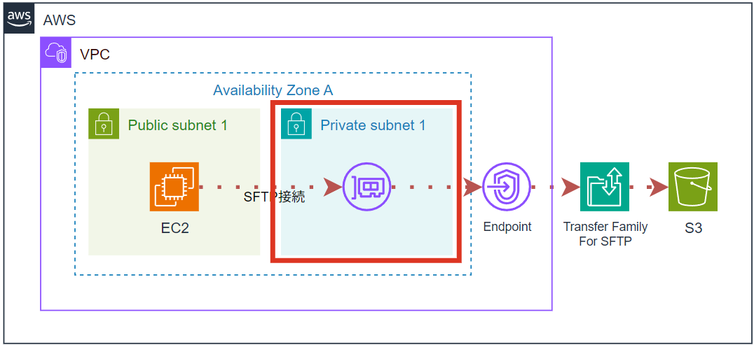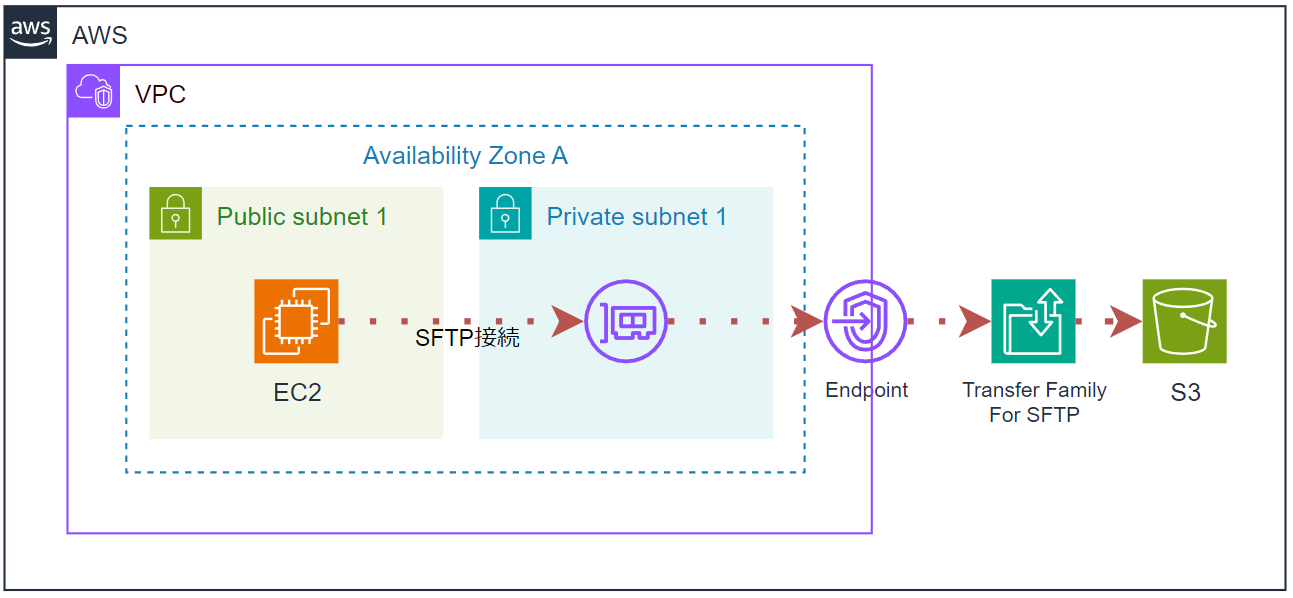 以下がTransferFamily for SFTPを構築する本記事の流れです。
