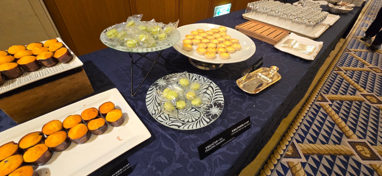 昼間から終了まで、廊下エリア?には飲み物と食べ物が常時並んでた!おやつどきにはマカロンとか。ここでも外資スゲェとなる