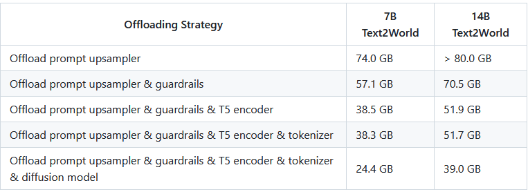 NVIDIA が提示する Cosmos の GPU 要求量です。様々な削減戦略で GPU を節約しても、7B系軽量モデルで T2V を行う場合、最低 24.4GB 必要です。もうすぐ発売される Geforce RTX 5090 32GB でもようやく動くレベルです。それを RTX 2080Ti 11GB でどうせよと、、