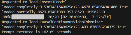 プロンプトのトークン数で、VRAMの消費はかなり変化します。以下のように Cosmos 256トークンのプロンプトを、内容や描写を変えないように、Claude 3.5 で半分の 128トークンに圧縮したものを使用しました。