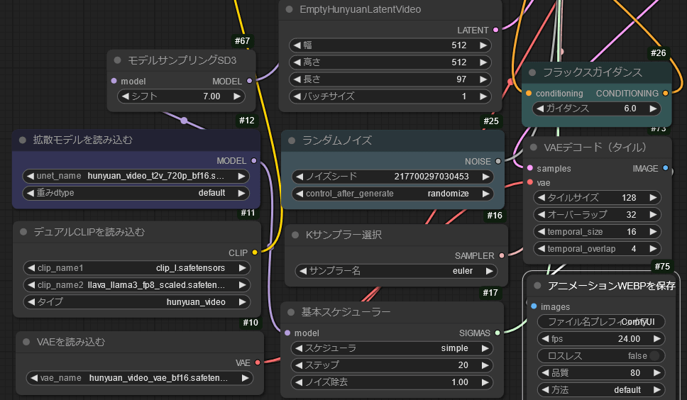 Hunyuan-Video の構築は、以下の ComfyUI_examples が最も導入しやすいと思います。