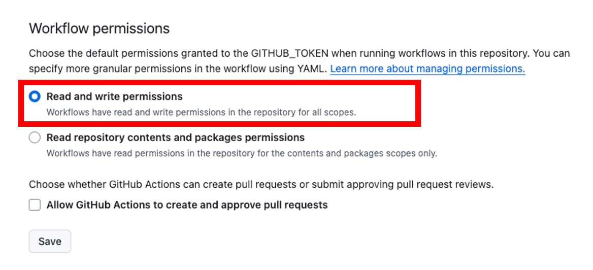 リポジトリのSettingでActionsの項目から、Workflow permissionsを「Read and write permissions」を選択。terraform経由でリモートstateを更新するから必要なんですかね〜