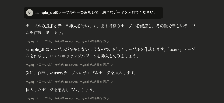 そこで今回は、まず手軽に試せる題材として、ローカル環境のMySQLデータベースと接続するMCPサーバーを作ってみました。