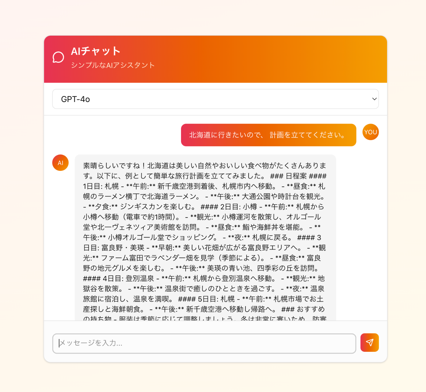 AI SDK を使って、シンプルなチャットアプリを作ってみました。