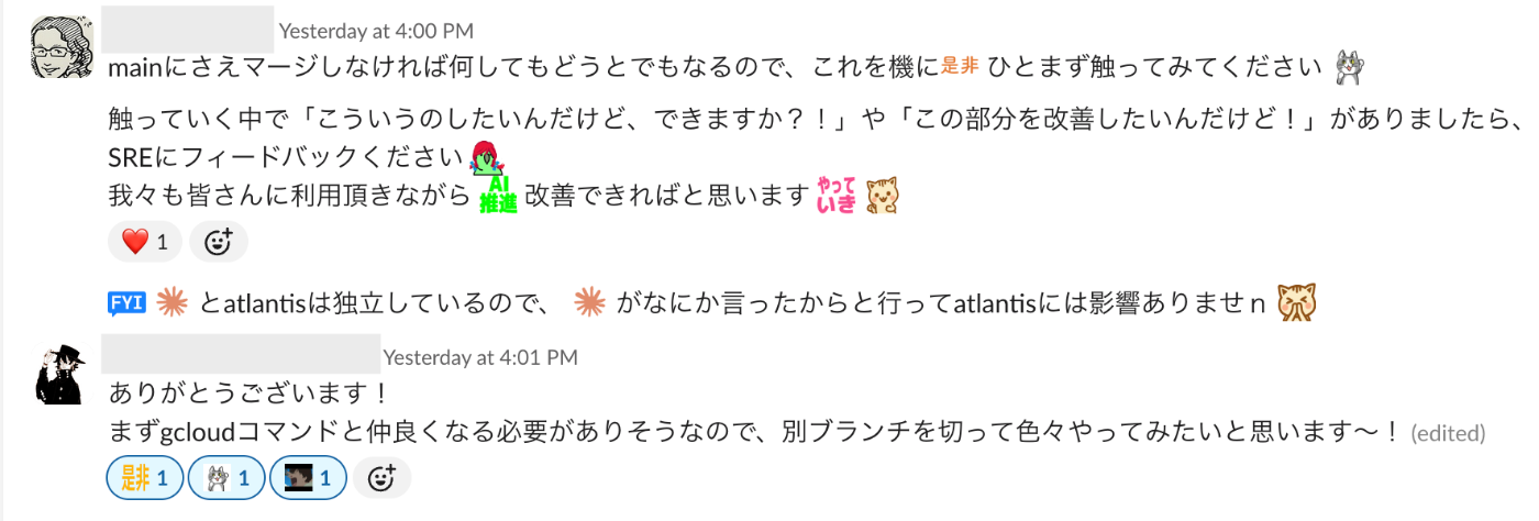 また、コーディングだけでなくAWSやKubernetesなどの知識についてもAIを通して質問できることで、それらの領域に関する疑問解消につながり、喜ばしいという反応をいただきました。