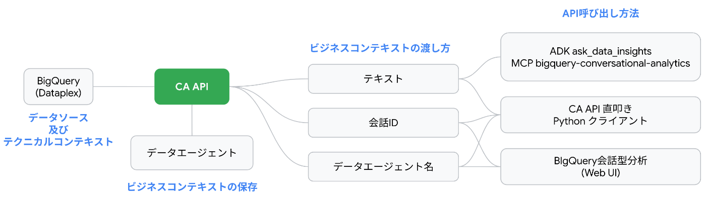 - CA APIはLookerをデータソースとするデータエージェントを呼び出す際にも利用するAPIです