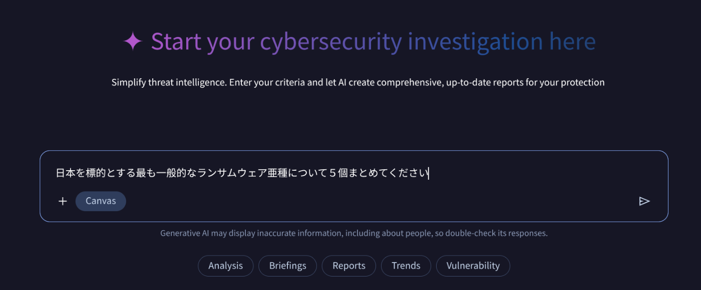 最新の脅威インテリジェンスを対話を通じて引き出し、次世代のセキュリティ運用をスタートさせてみませんか?