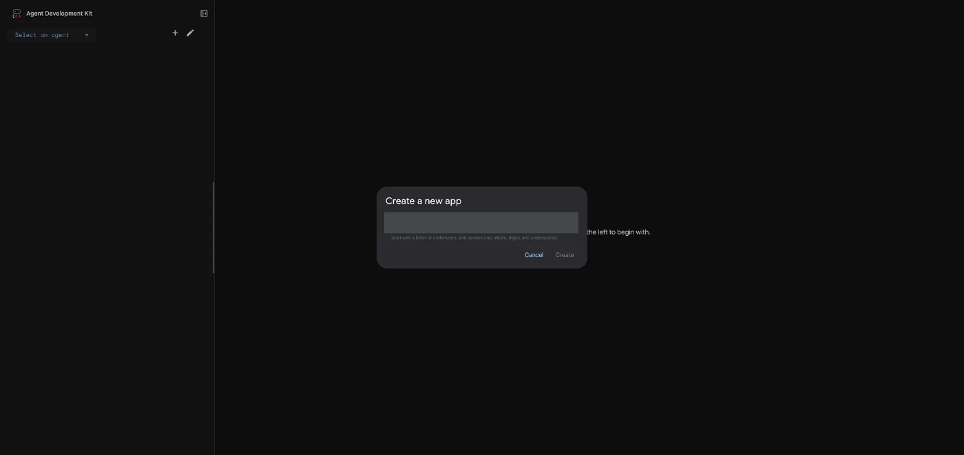 ADK Web UI が起動したら、左メニューの上部にある「+」ボタンをクリックします。