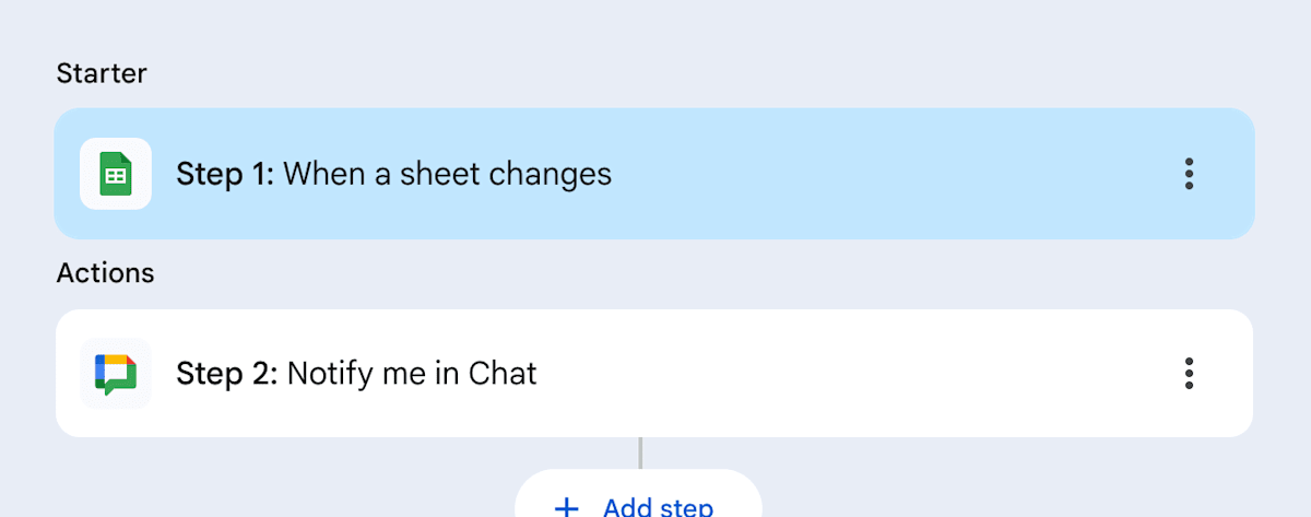 この記事では Google Sheets (スプレッドシート) の変更を Google Chat に通知するフローを作りたいと思います。ユースケースとしては 作成したスライドなどをシートで共有していた場合に、追加された際に通知を受け取る というケースを想定しています。