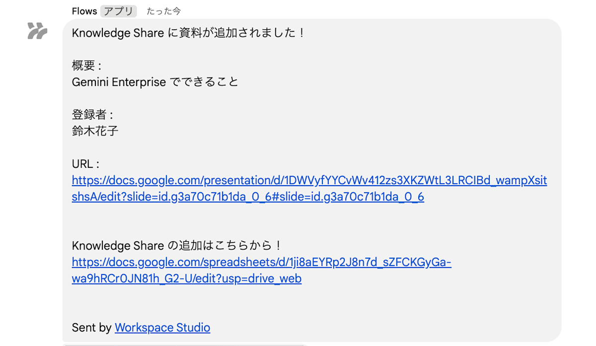 Google Workspace Studio で Google Sheets の変更内容を通知し、ナレッジシェアを最大化する